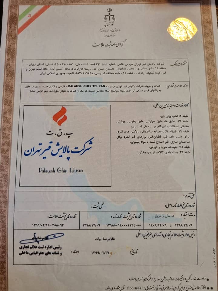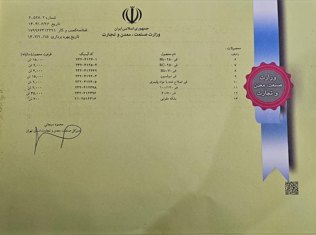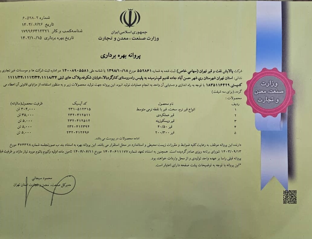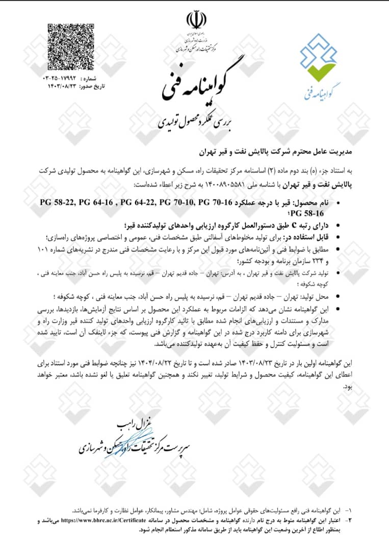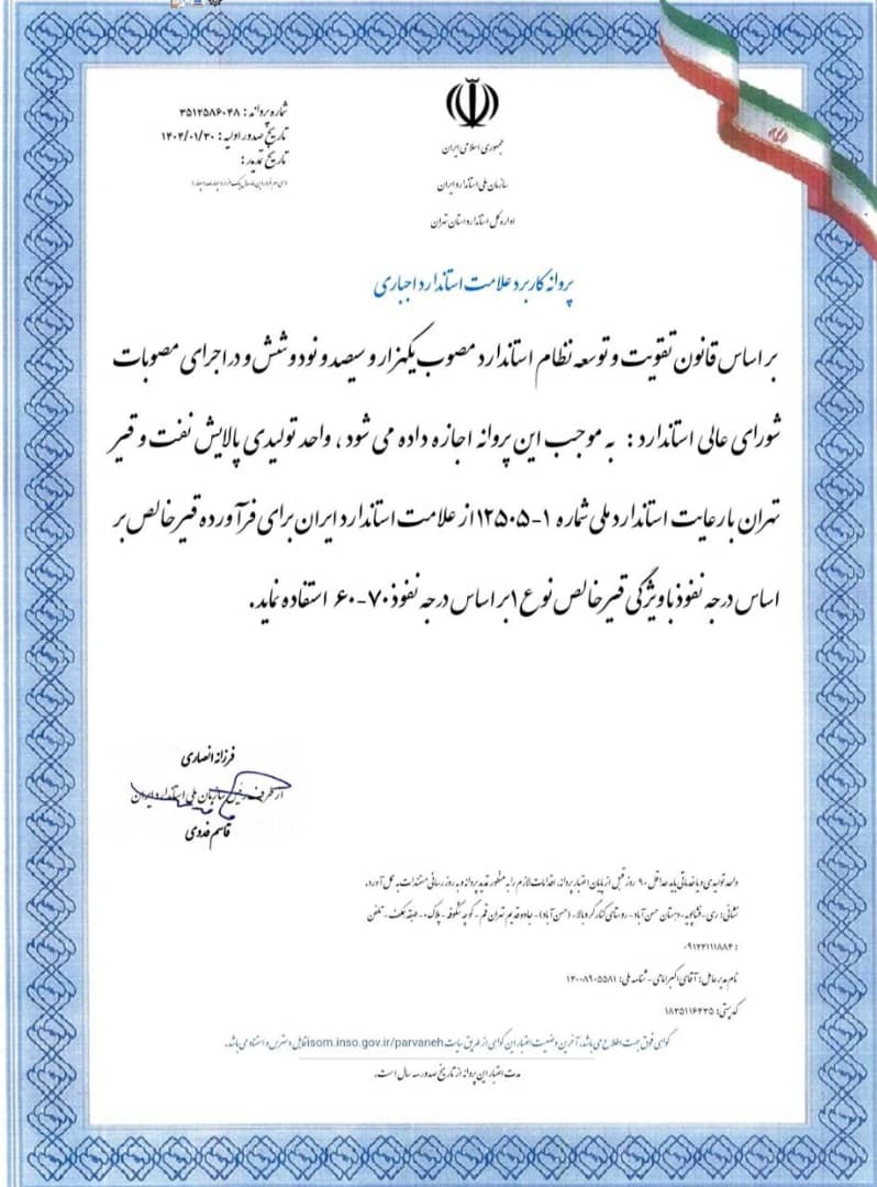 گواهی نامه های شرکت پالایش نفت و قیر تهران